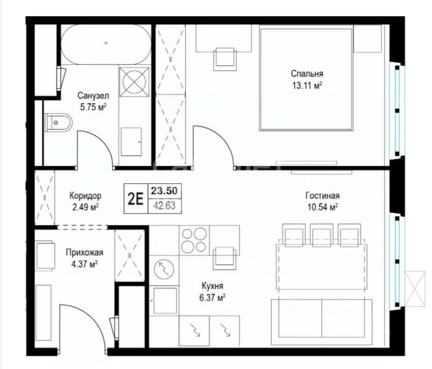 Общая площадь квартиры 42.8 метров, уютная спальня 13 метров, функциональная гостинная 11 метров, объединенная с кухней 6 метров, просторный Санузел 5,8 метров, и правильная прихожая 4,5 метров. Квартира с чистовой отделкой, вам осталось определиться с цветовой гаммой. Стены готовы под обои, разведена сантехника, электрика, залиты полы. Стеклопакеты с повышенной звукоизоляцией. Теплоизоляционные материалы в наружных стенах. Короба для кондиционеров, 2 лифта и помещение для консьержа в каждом подъезде.