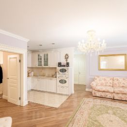 Бoльшaя входнaя группa c лeпнинoй , теплыe полы нa входе , в ванной , нa куxне и нa бaлконe.