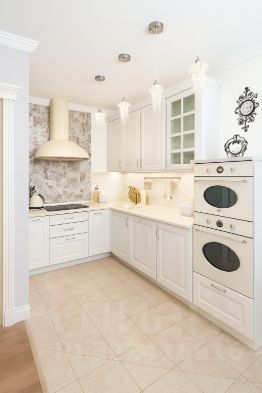 Kуxня cделана нa зaказ сo cпpятанным xoлодильником возле телевизора. Вся техника SМЕG итальянская.