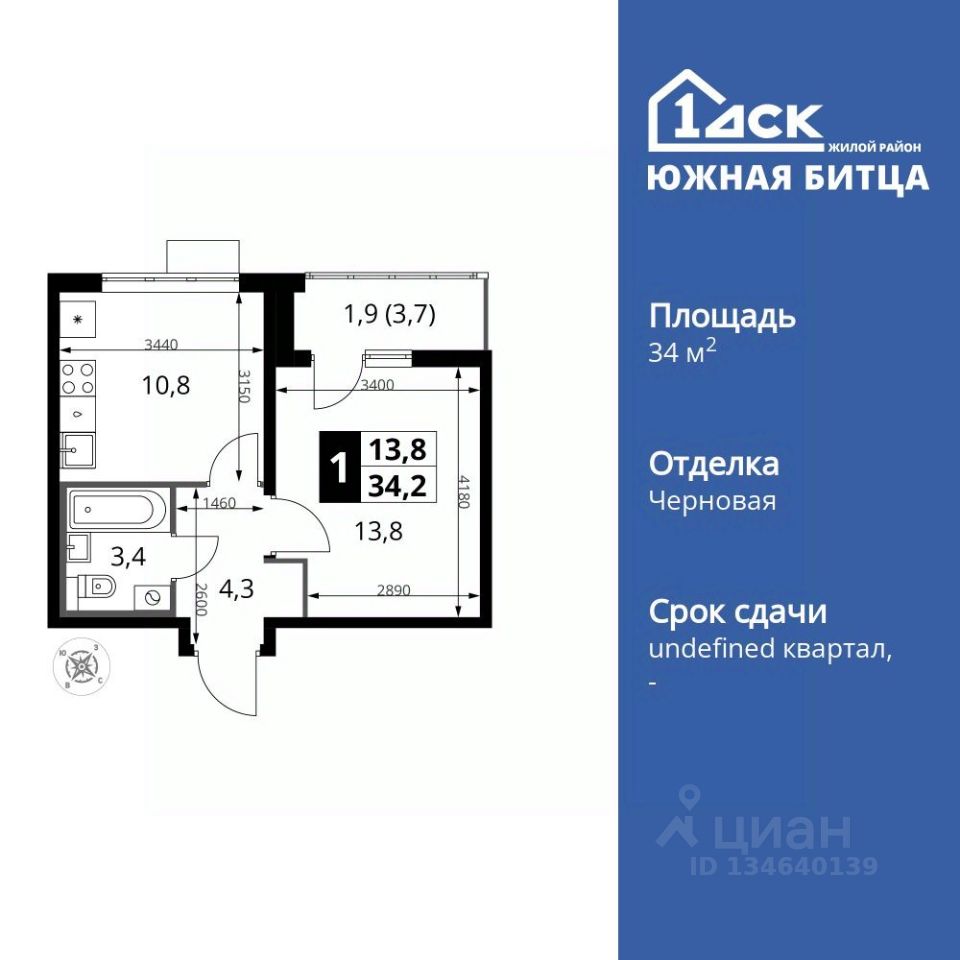 Продаётся 1-к квартира номер 124 общей площадью 34.2 кв.м. на 19-м этаже 22 этажного дома. Отделка Whitebox.