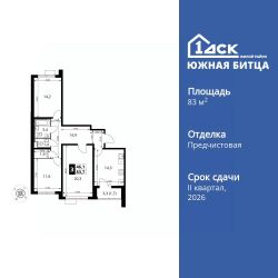 Продаётся 3-к квартира номер 309 общей площадью 83.8 кв.м. на 14-м этаже 22 этажного здания. Отделка Whitebox.