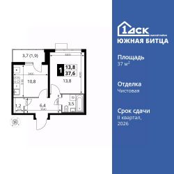 Продаётся 1-к квартира номер 371 общей площадью 37.9 кв.м. на 7-м этаже 22 этажного здания. Чистовая отделка.