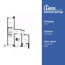 Продаётся 3-к квартира номер 373 общей площадью 82.9 кв.м. на 8-м этаже 22 этажного здания. Чистовая отделка.