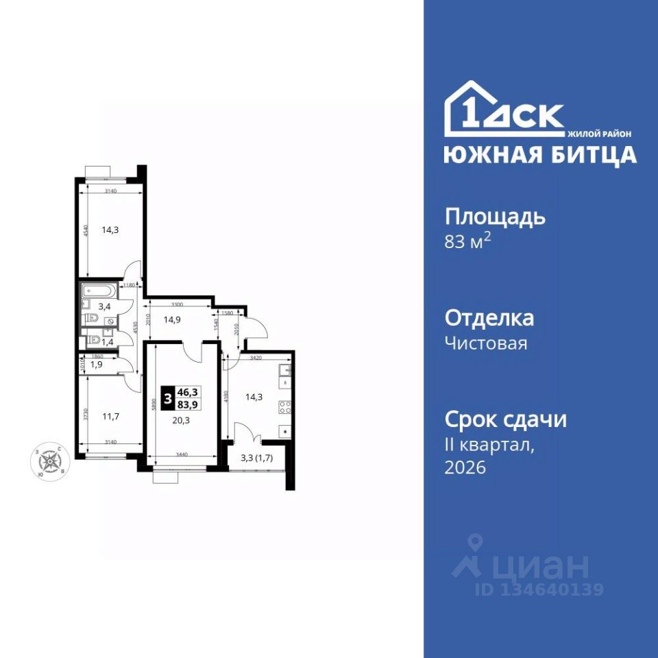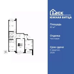 Продаётся 3-к квартира номер 377 общей площадью 84 кв.м. на 9-м этаже 22 этажного здания. Чистовая отделка.