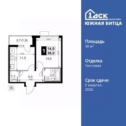 Продаётся 1-к квартира номер 379 общей площадью 38.3 кв.м. на 9-м этаже 22 этажного здания. Чистовая отделка.