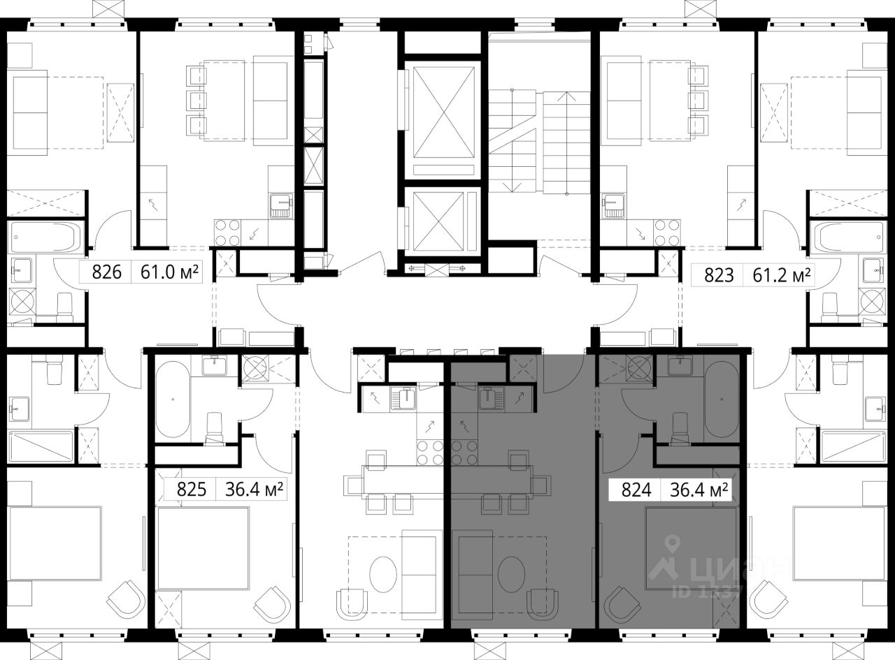 Продаётся 1-комнатная квартира общей площадью 36.40 м² с предчистовой отделкой в ЖК "У реки. Эко Видное 2.0" на 8-м этаже корпуса Нестеров.