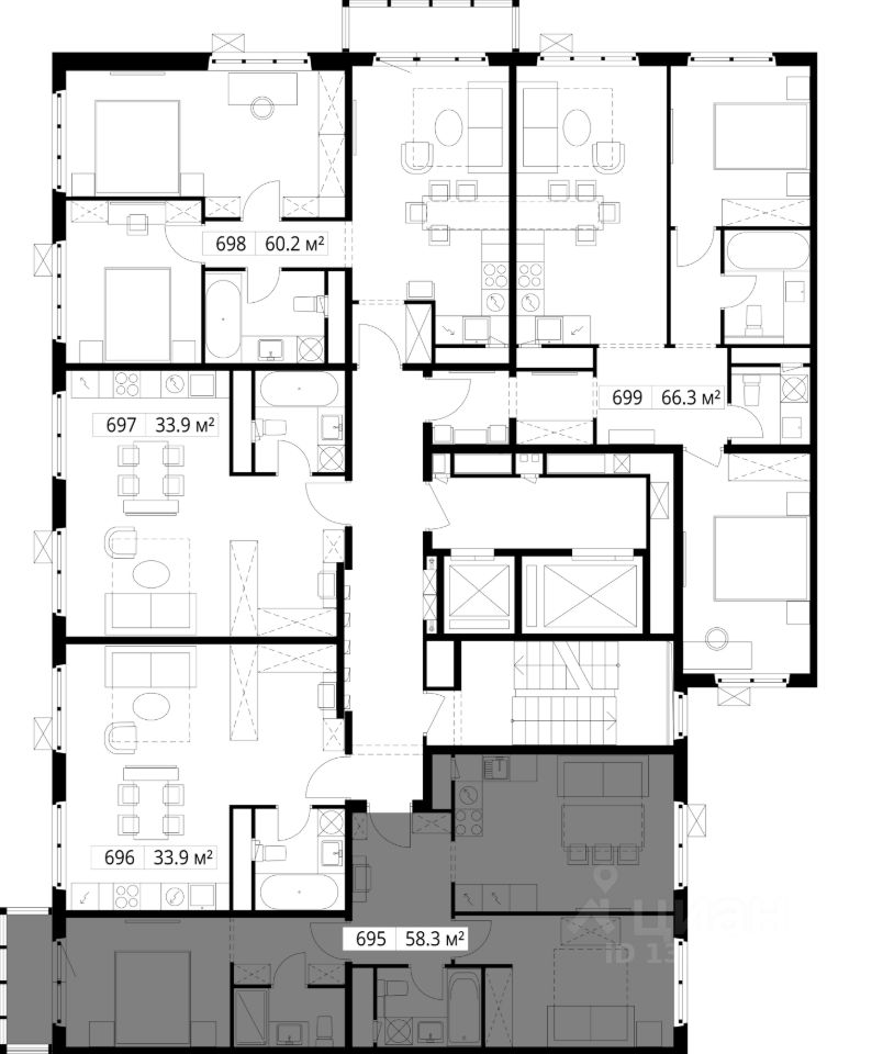 Продаётся 2-комнатная квартира общей площадью 58.30 м² с предчистовой отделкой в ЖК "У реки. Эко Видное 2.0" на 10-м этаже корпуса Нестеров.
