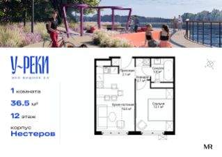 Продаётся 1-комнатная квартира общей площадью 36.50 м² с предчистовой отделкой в ЖК "У реки. Эко Видное 2.0" на 12-м этаже корпуса Нестеров.