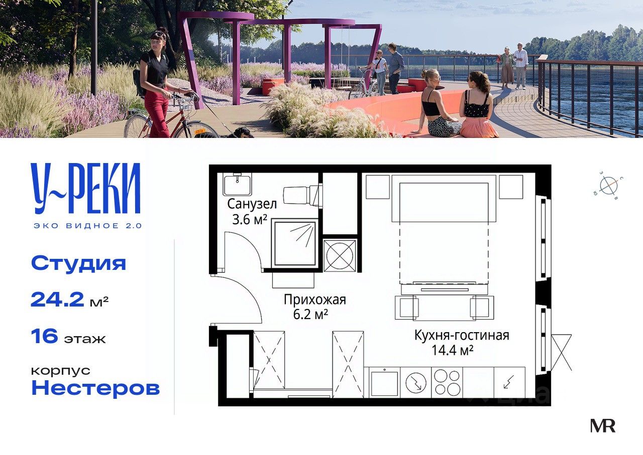 Продаётся студия общей площадью 24.20 м² с предчистовой отделкой в ЖК "У реки. Эко Видное 2.0" на 16-м этаже корпуса Нестеров.