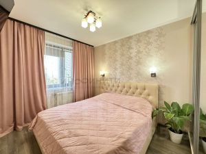 - качественный дорогостоящий ремонт, с заменой всех коммуникаций (новая стяжка, разводка электрики, сливных коммуникаций, трехкамерные стеклопакеты, натяжные потолки, теплый пол, дорогостоящая сантехника);