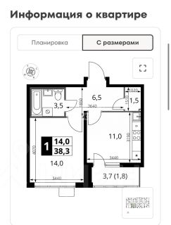 Общая площадь — 38,3 м²
