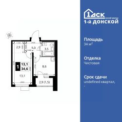 Продаётся 1-к квартира номер 274 общей площадью 34.6 кв.м. на 4-м этаже 24 этажного дома. Чистовая отделка.