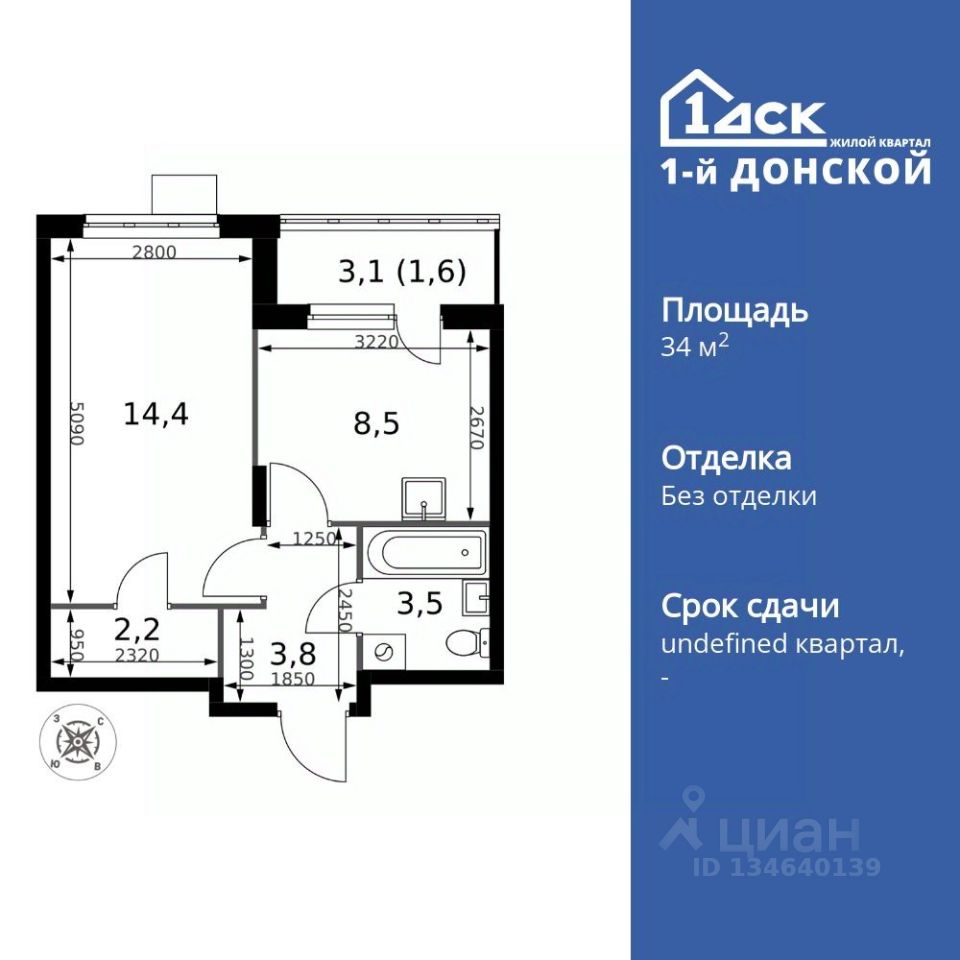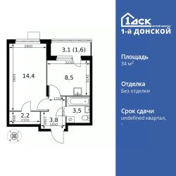 Продаётся 1-к квартира номер 28 общей площадью 34 кв.м. на 4-м этаже 24 этажного дома. Без отделки. Цена с учётом скидки!