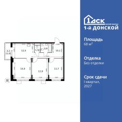 Продаётся 3-к квартира номер 520 общей площадью 68.6 кв.м. на 24-м этаже 24 этажного здания. Без отделки.