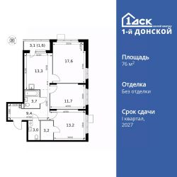 Продаётся 3-к квартира номер 590 общей площадью 76.7 кв.м. на 7-м этаже 24 этажного дома. Без отделки. Цена с учётом скидки!