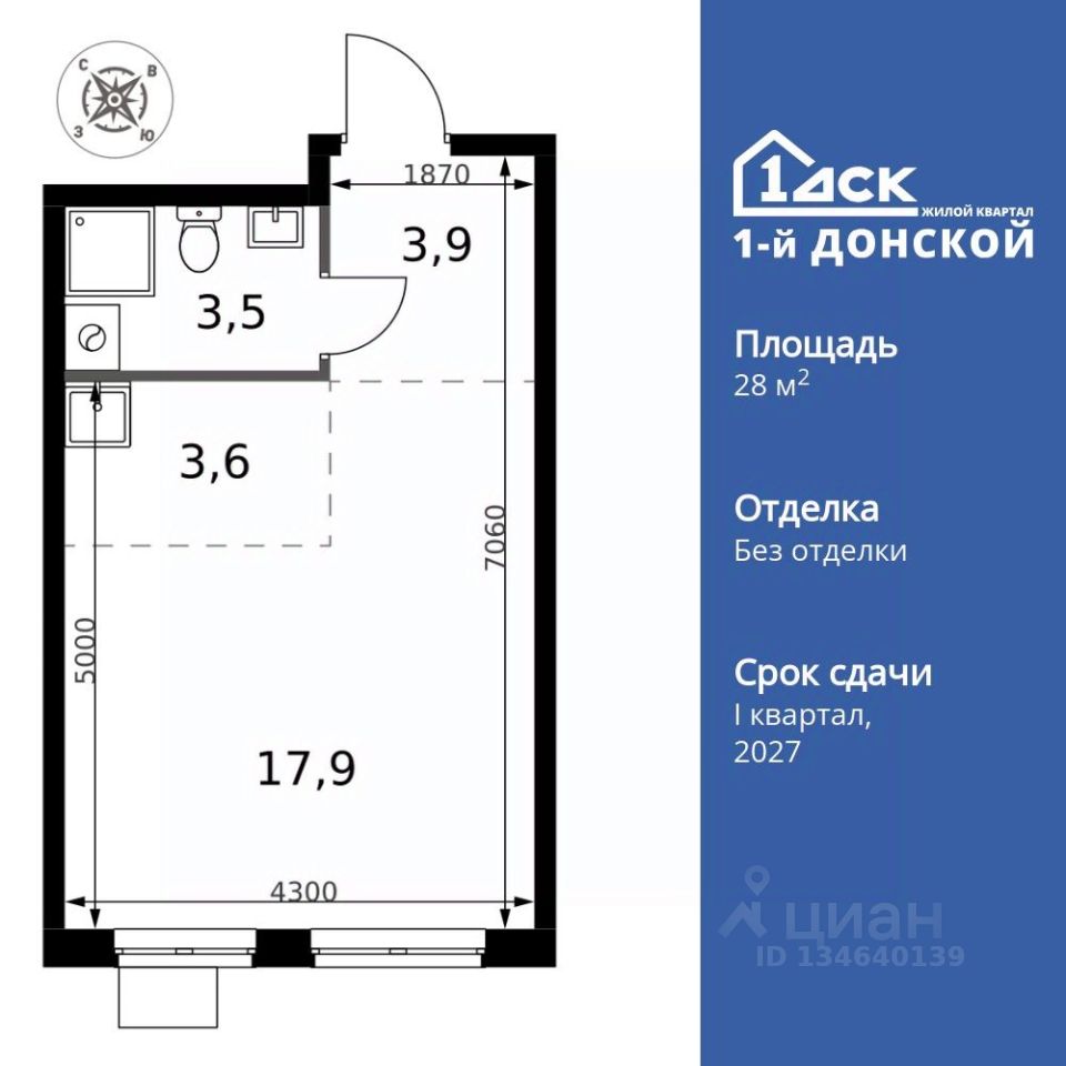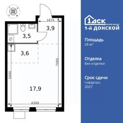 Продаётся квартира-студия номер 278 общей площадью 28.9 кв.м. на 4-м этаже 24 этажного здания. Без отделки.