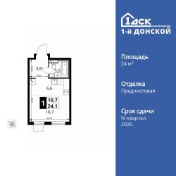 Продаётся квартира-студия номер 571 общей площадью 24.1 кв.м. на 11-м этаже 24 этажного дома. Отделка Whitebox.
