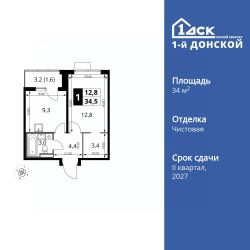 Продаётся 1-к квартира номер 357 общей площадью 34.5 кв.м. на 12-м этаже 24 этажного дома. Чистовая отделка.