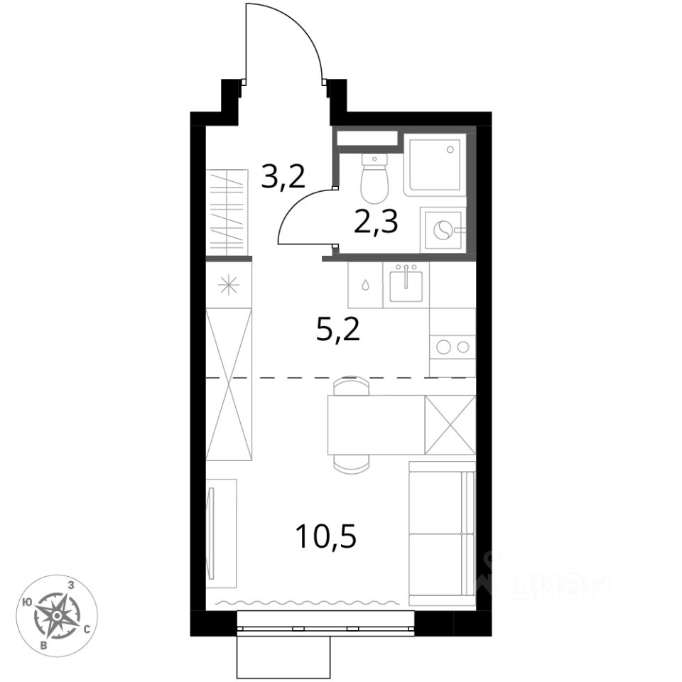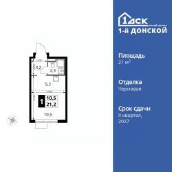 Продаётся 1-к квартира номер 577 общей площадью 21.2 кв.м. на 10-м этаже 24 этажного дома. Отделка Whitebox.