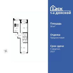 Продаётся 2-к квартира номер 918 общей площадью 58.5 кв.м. на 22-м этаже 24 этажного дома. Отделка Whitebox.