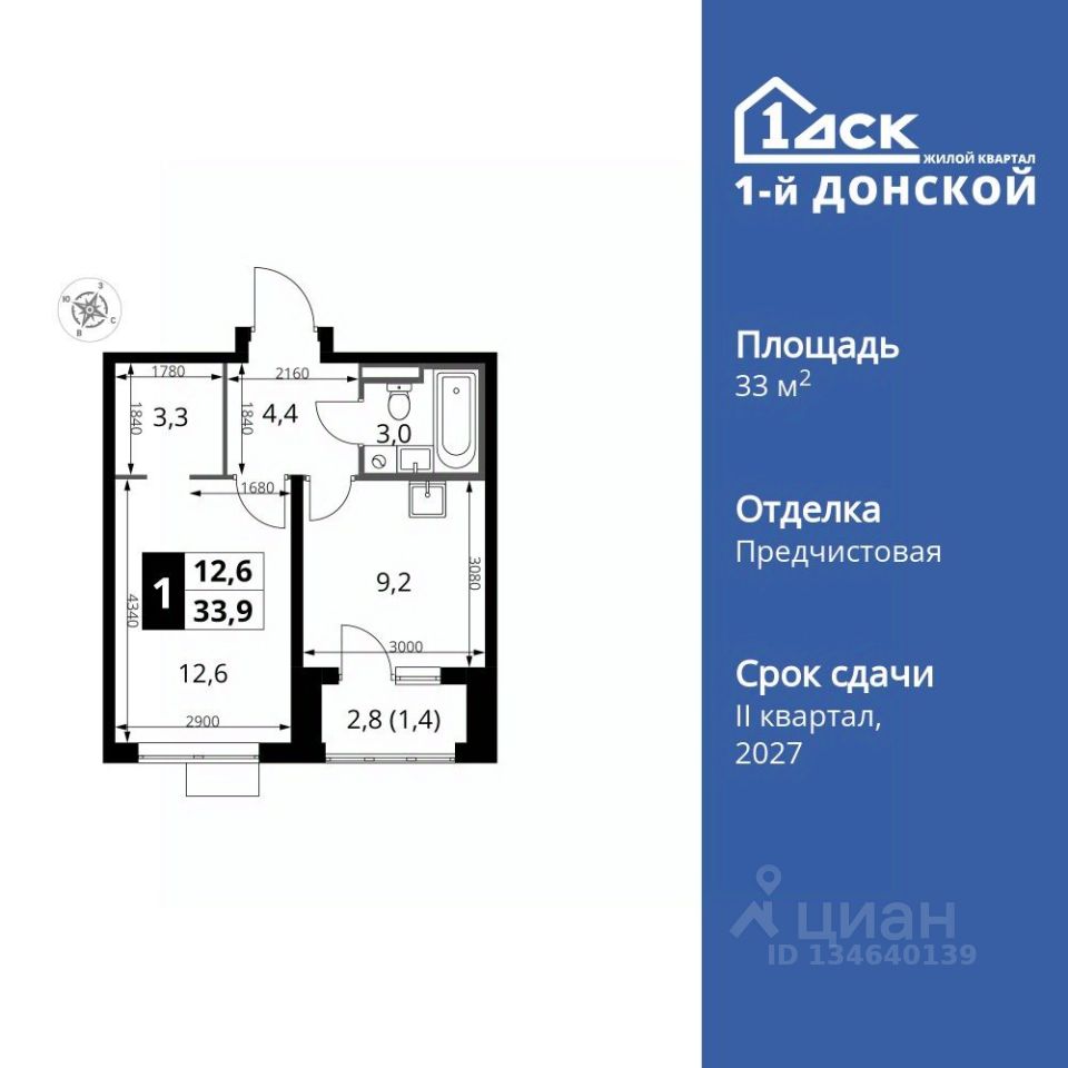 Продаётся 1-к квартира номер 811 общей площадью 33.9 кв.м. на 10-м этаже 24 этажного здания. Отделка Whitebox.