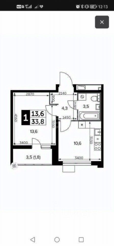 О квартире: квартира формата евро2, площадь 33,8 кв.м, расположена на 4 этаже 23 этажного дома.Кухня-гостинная 13,8 кв.м. ,