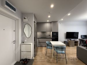 В квартире свежий евроремонт, покрашены стены, установлен качественный кухонный гарнитур, кондиционер, люстры и светильники, в санузле обеспечены дополнительные места хранения. Перечисленная мебель и техника остается, остальное по согласованию.