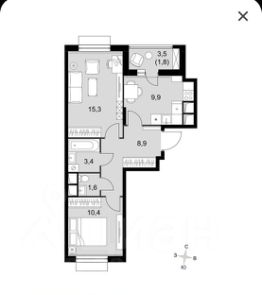 Продаётся 2к квартира общей площадью 51,8 кв.м. на 6-м этаже 16 этажного дома.