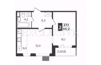 Арт. 117697818 2-комнатная квартира 43,9 м² в ЖК "Южная Битца"