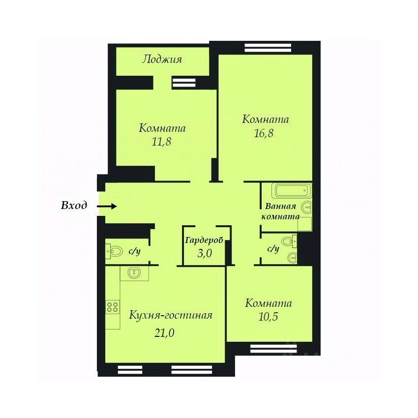 Один собственник. Зарегистрированных нет. Помощь и преференции в получении ипотеки по самой низкой ставке.