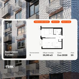 Продаётся 1-комн. квартира площадью 35 кв.м на 23 этаже 25 этажного дома (Корпус 48, Секция 4) проекта ПИК Восточное Бутово. Светлый просторный подъезд на уровне земли, функциональная планировка, большие окна, предчистовая отделка.