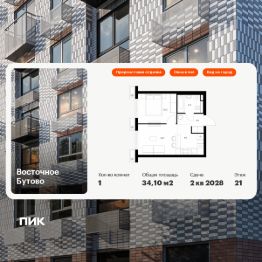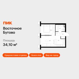 Продаётся 1-комн. квартира площадью 34,1 кв.м на 21 этаже 25 этажного дома (Корпус 48, Секция 4) проекта ПИК Восточное Бутово. Светлый просторный подъезд на уровне земли, функциональная планировка, большие окна, предчистовая отделка.