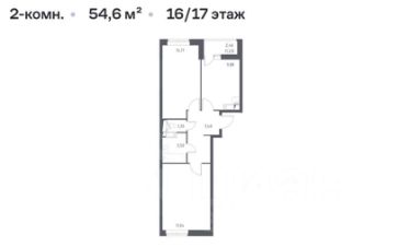 Площадь 52,6 м² просторная кухня-гостиная, две спальни или гостиная + детская