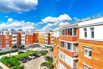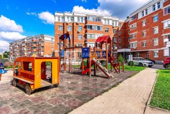 Просторные подъезды с лифтами, уютные дворики с детскими площадками, магазины, детский сад на территории
