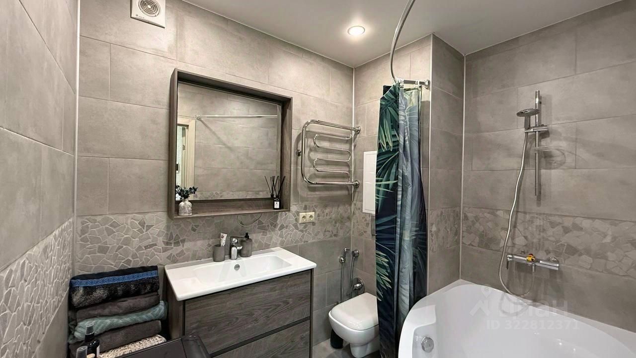 Санузел совмещённый. Большая удобная ванна, интерьерная раковина, зеркало с подсветкой и гигиенический душ.