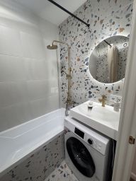 В квартире сделан качественный ремонт, установлена дорогая сантехника, есть вся необходимая для проживания мебель и техника (холодильник, варочная поверхность, встроенная вытяжка, стиральная машина). В коридоре вместительный шкаф. Специально предусмотрен широкий подоконник, который можно использовать как рабочий стол.