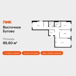 Продаётся 3-комн. квартира площадью 89,6 кв.м на 9 этаже 16 этажного дома (Корпус 42, Секция 1) проекта ПИК Восточное Бутово. Светлый просторный подъезд на уровне земли, функциональная планировка, большие окна, c отделкой.