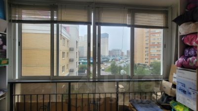 Удачная планировка: Большая комната с нишей под вместительный встроенный шкаф (который остается!), удобный балкон с двумя стеллажами (тоже остаются!).