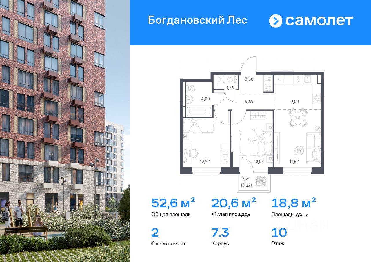 Строим кварталы для жизни с заботой о будущем. Предлагается 2-комнатная квартира комфорт-класса 52,59 кв.м в корпусе 7.3 на 10 этаже, в ЖК "Богдановский Лес"