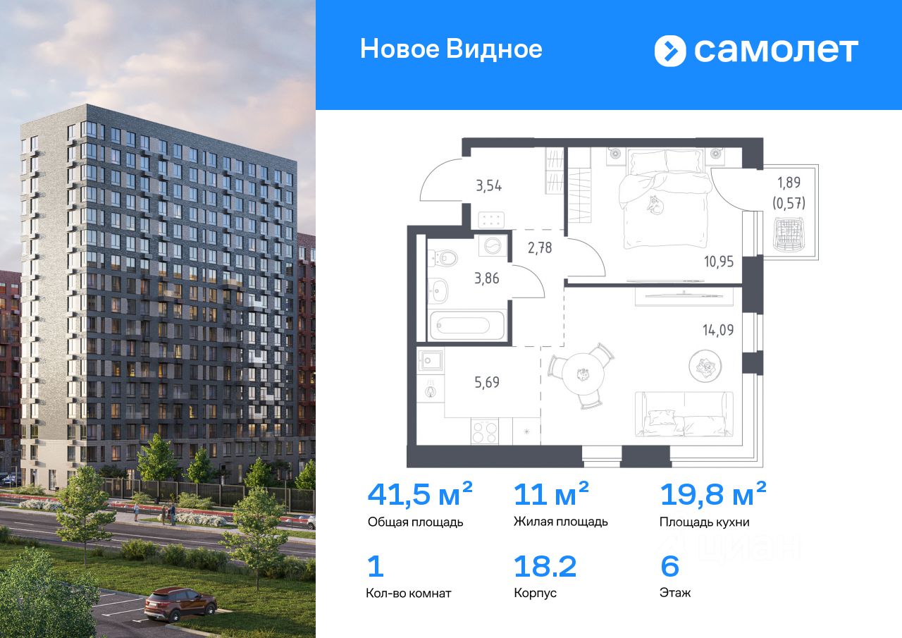 Строим кварталы для жизни с заботой о будущем. Предлагается 1-комнатная квартира комфорт-класса 41,48 кв.м в корпусе 18.2 на 6 этаже, в ЖК "Новое Видное"