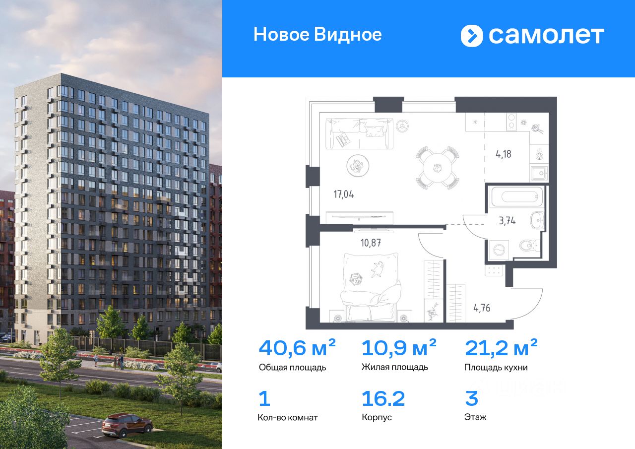 Строим кварталы для жизни с заботой о будущем. Предлагается 1-комнатная квартира комфорт-класса 40,59 кв.м в корпусе 16.2 на 3 этаже, в ЖК "Новое Видное"