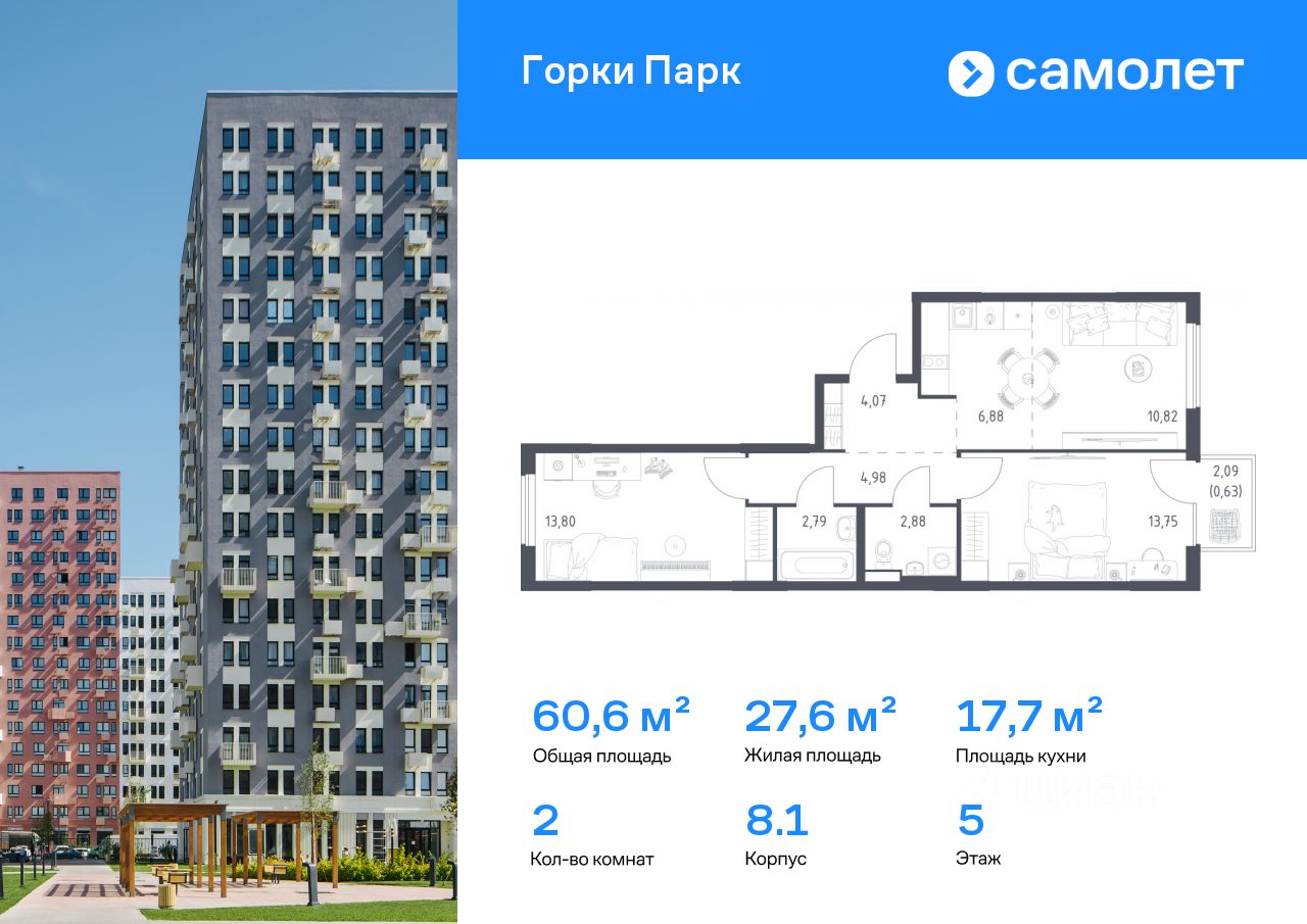 Строим кварталы для жизни с заботой о будущем. Предлагается 2-комнатная квартира комфорт-класса 60,6 кв.м в корпусе 8.1 на 5 этаже, в ЖК "Горки Парк"