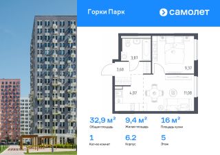Строим кварталы для жизни с заботой о будущем. Предлагается 1-комнатная квартира комфорт-класса 32,87 кв.м в корпусе 6.2 на 5 этаже, в ЖК "Горки Парк"