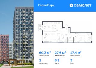 Строим кварталы для жизни с заботой о будущем. Предлагается 2-комнатная квартира комфорт-класса 60,3 кв.м в корпусе 6.1 на 3 этаже, в ЖК "Горки Парк"