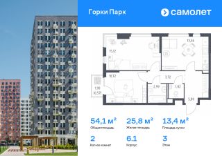 Строим кварталы для жизни с заботой о будущем. Предлагается 2-комнатная квартира комфорт-класса 54,1 кв.м в корпусе 6.1 на 3 этаже, в ЖК "Горки Парк"