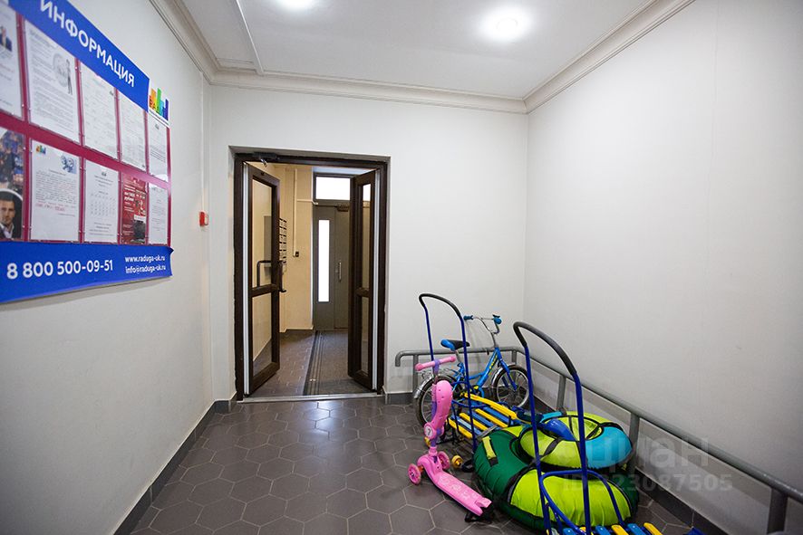 Имеются два выхода из подъезда: во внутренний двор и на внешнюю сторону дома. На первом этаже в подъезде имеются места для колясок и велосипедов.