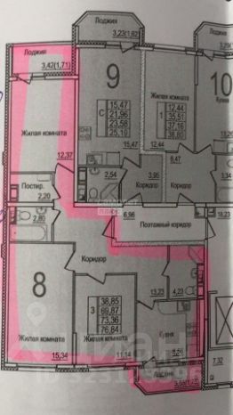 Общая площадь 76.84 кв м, комнаты 15.3 / 12.37 / 11.1 кв м, два сан-узла. Выполнен качественный хороший ремонт, всё делали для себя, но поменялись планы. Осталось только установить натяжные потолки.