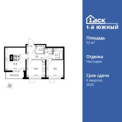 Продаётся 2-к квартира номер 441 общей площадью 52.7 кв.м. на 18-м этаже 25 этажного здания. Чистовая отделка. Цена с учётом скидки.