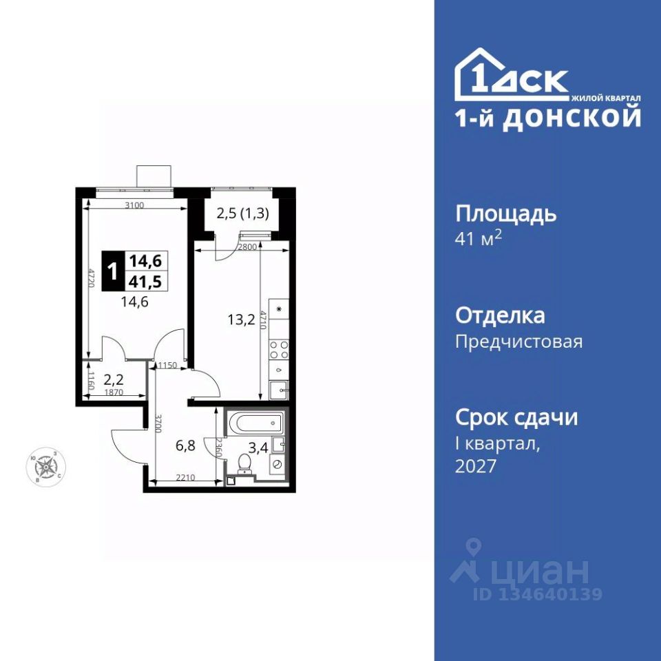 Продаётся 1-к квартира номер 758 общей площадью 41.5 кв.м. на 8-м этаже 24 этажного дома. Отделка Whitebox.