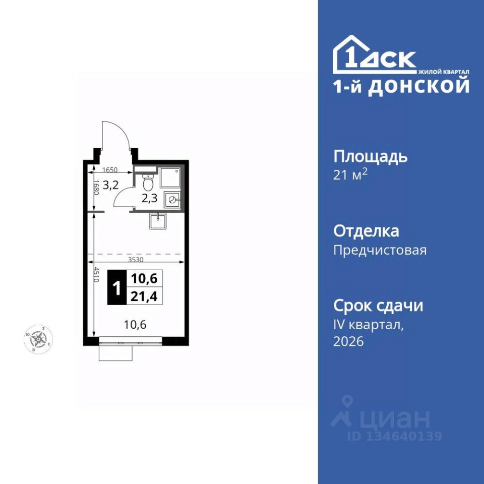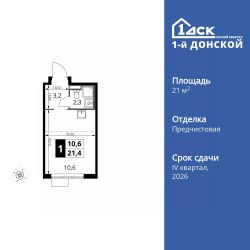 Продаётся квартира-студия номер 687 общей площадью 21.4 кв.м. на 20-м этаже 24 этажного дома. Отделка Whitebox.